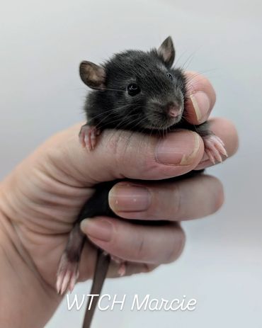 On February 13, 2025, I paired two of my rats for a line breed. They are a father-daughter pair, and my goal was to promote the fabulous temperament of each and pass it along down the line. In the wild, rats live in colonies, and often interbreed, so incest isn't something that negatively affects them. Pairing closely related rats helps to amplify desirable traits, and allow breeders to weed out the bad, and less desirable traits with selective breeding. The pair I chose was WTCH Chopper Tom, and his daughter WTCH Rosalina. Little did I know, this pairing would produce quite a surprise for me.